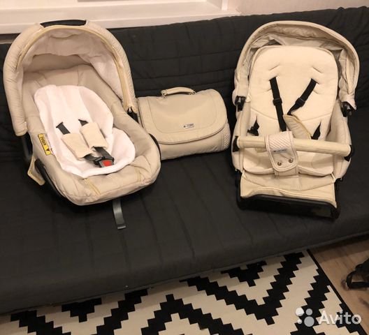 Комплектация: люлька, прогулочный блок, автолюлька. Сумка для мамы, москитные сетки, дождевик, матрасик, подстаканник, муфты для рук, переходники для автолюльки( для установки на раму).
