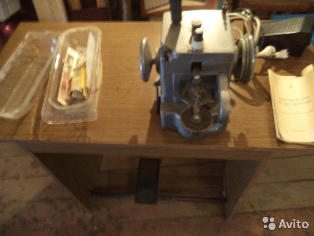 В комплекте со столом и педалью отвода прижимного диска.В рабочем состоянии.Легко сшивает кусочки кожи и меха.Машина домашнего хранения,приобреталась для личного потребления,промышленно не эксплуатировалась,вся механика в отличном состоянии.